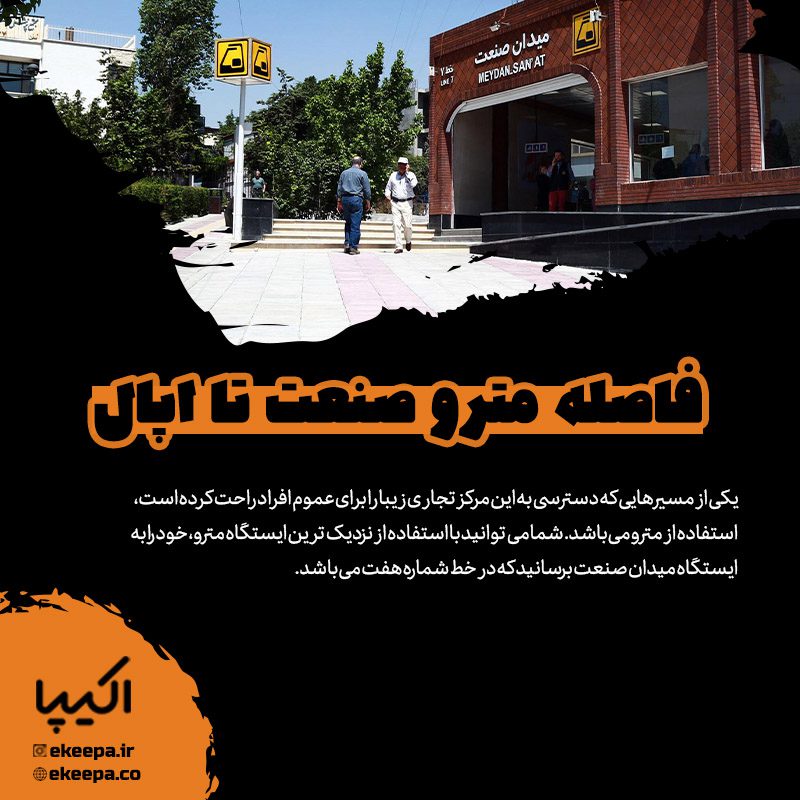 یکی از مسیرهایی که دسترسی به این مرکز تجاری زیبا را برای عموم افراد راحت کرده است، استفاده از مترو میباشد. شما میتوانید با استفاده از نزدیکترین ایستگاه مترو، خود را به ایستگاه میدان صنعت برسانید که در خط شماره هفت میباشد.